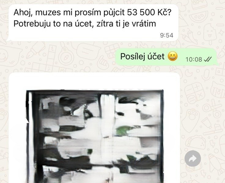 Jak se podvodníci vydávají za vaše známé? "Neznámí pachatelé získají přístup k účtu uživatelů na aplikaci WhatsApp a následně kontaktují jejich známé či rodinu s naléhavou prosbou o finanční pomoc. Typicky se vydávají za poškozeného a tvrdí, že potřebují rychle zaplatit neodkladnou fakturu či půjčit finanční prostředky. Cílem je přimět adresáta zprávy k okamžitému zaslání peněz. Škody jdou už do stovek tisíc korun," říká policistka Zuzana Churaňová.
