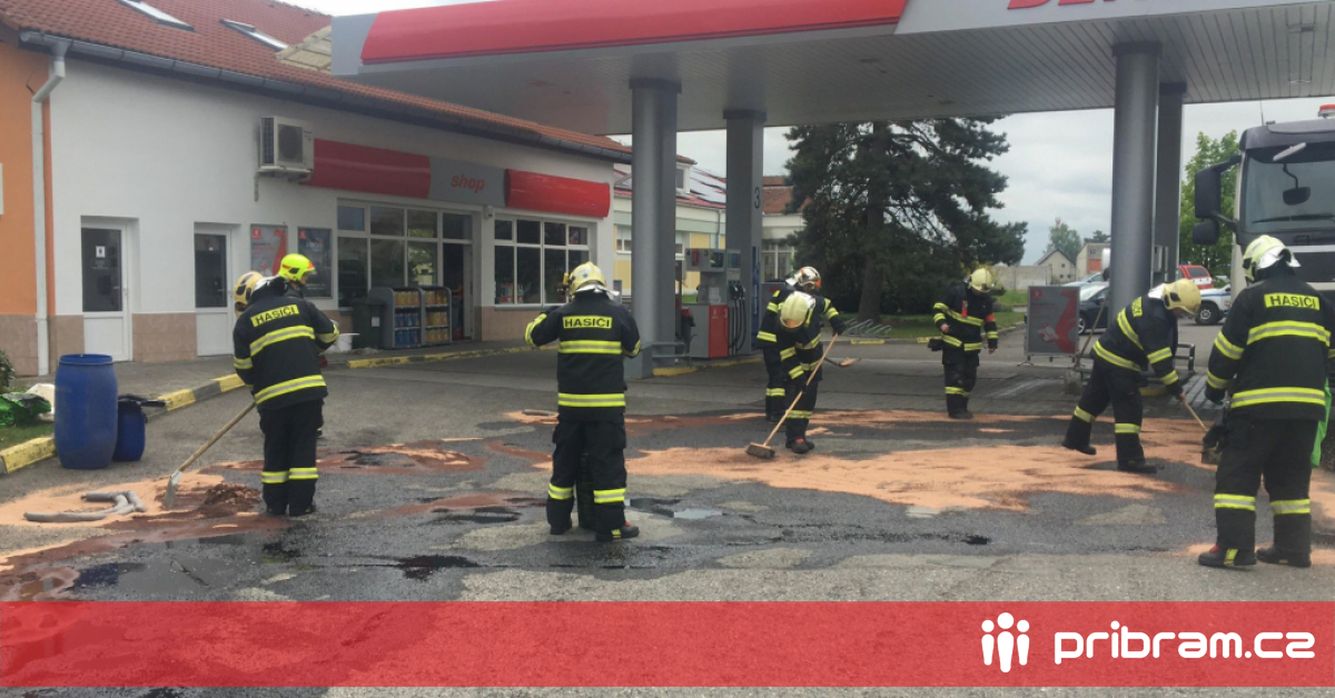 Čerpací stanice Benzina v Březnici je v tuto chvíli zcela uzavřena. Tři jednotky hasičů zde zasahují v případě úniku 300 až 400 litrů pohonných hmot. Část z nich odtéká do lapače, zbytek budou muset hasiči uklidit i z komunikace.
