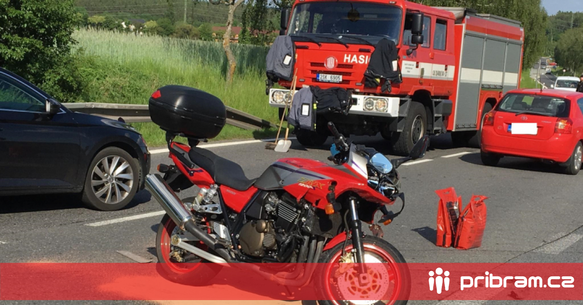 Policisté uzavřeli jeden jízdní pruh a hasiči odstraňují následky střetu. Zraněný motorkář je v péči lékařů.