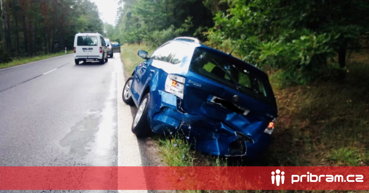Účastníci dopravní nehody čekají na příjezd policistů, kteří určí viníka této události. Při nehodě nedošlo ke zranění, jízdní pruh ve směru na Příbram je neprůjezdný.