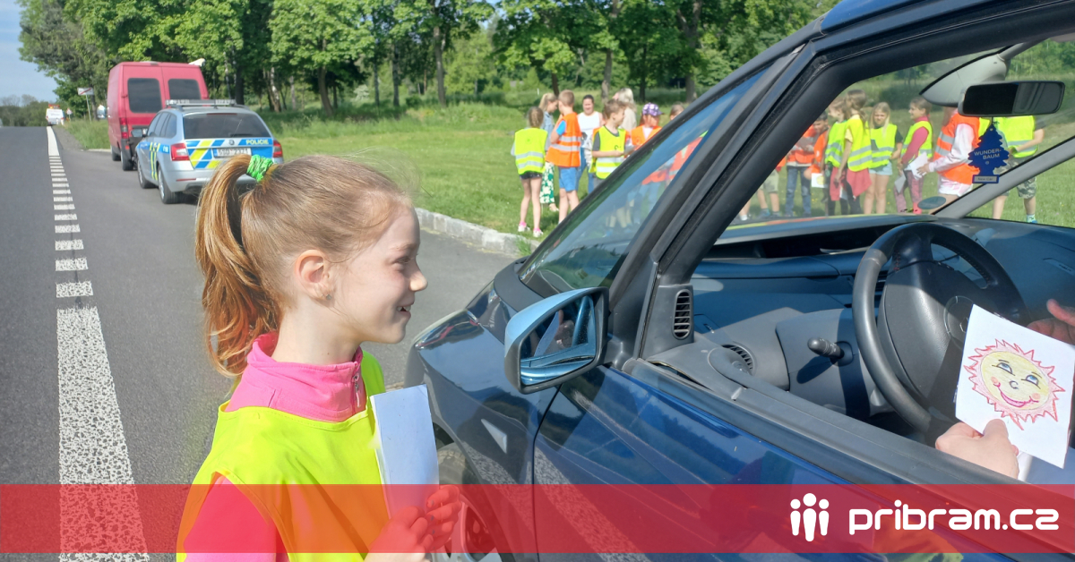 Děti v Bohutíně viděly silniční kontroly očima policistů, řidičům rozdávaly zamračená či usměvavá sluníčka
