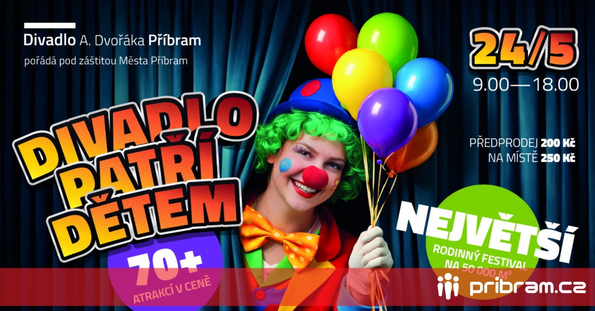 Jednou za rok se Příbram promění v obří dětské království. Festival Divadlo patří dětem, největší rodinná akce svého druhu ve Středočeském kraji, zaplní 50 000 m² atrakcemi, pohádkami, technikou i adrenalinovými show. Letos navíc přináší zásadní novinku: zvýhodněné vstupné v předprodeji.