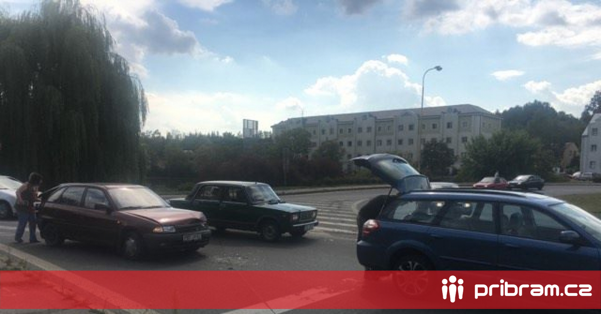 Dopravu v Příbrami komplikuje nehoda na kruhovém objezdu