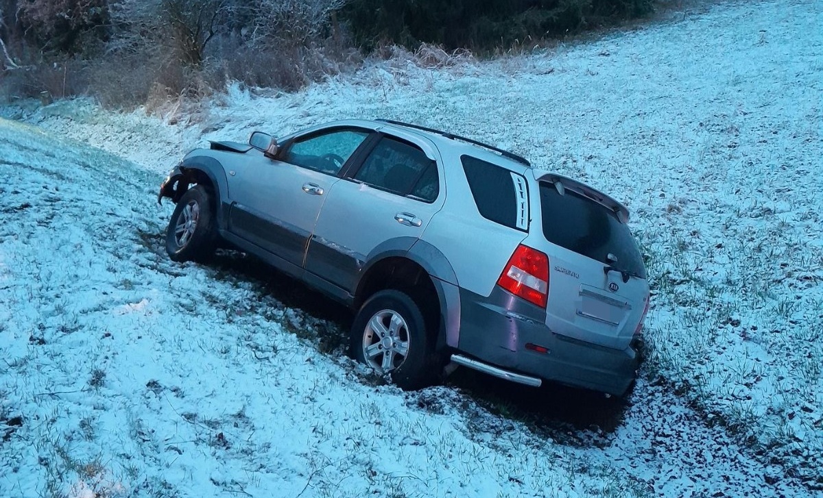 Krátce po šesté hodině ranní dostal v zatáčce hned za osadou Teslíny na silnici I/19 smyk řidič osobního auta. Na zasněžené vozovce ztratil kontrolu nad vozem a skončil mimo silnici. V autě vezl nezletilé dítě.