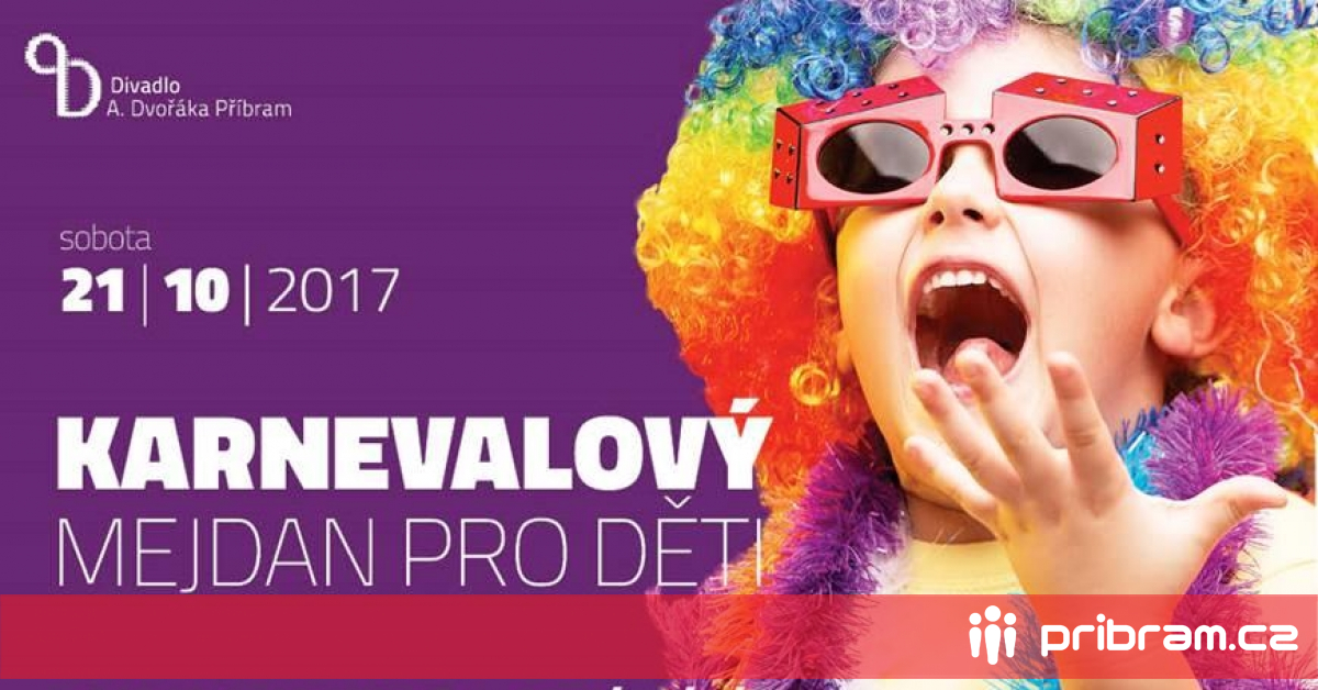 Estrádní sál bude 21. října plný masek a zábavy. Divadlo A. Dvořáka Příbram pořádá „Karnevalový mejdan pro děti“. Začátek je ve 14h a vstupné pro všechny návštěvníky symbolických 50,- kč.