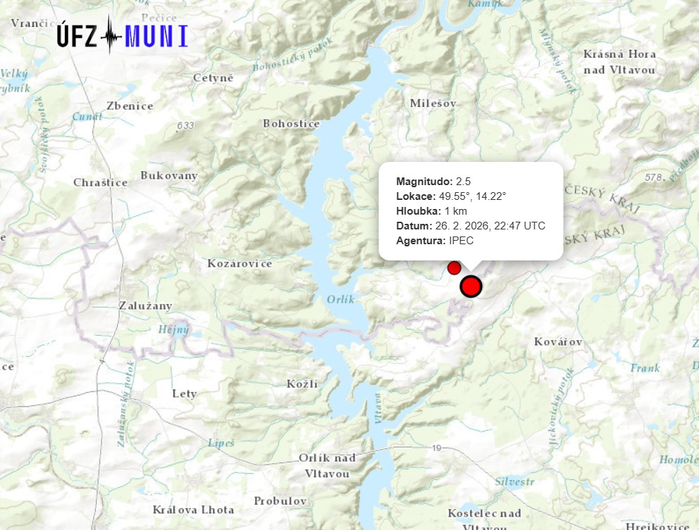 Obyvatele Klučenic a okolních obcí probudil ve čtvrtek pozdě večer nečekaný otřes. Zemětřesení o magnitudu 2,5, zaznamenané 26. 2. 2026 ve 23:47 SEČ, patří k nejsilnějším událostem v regionu za poslední rok. Otřes byl pocítěn v širokém okolí a mnoho lidí popisovalo krátké, ale zřetelné zachvění domů. A otřes pokračují i během dne.