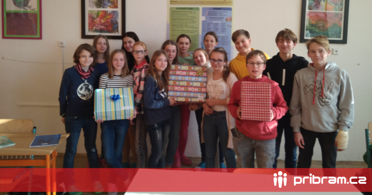 Dárkové krabice od bot věnovali chudším dětem i žáci příbramského Gymnázia Legionářů. Děti z celého regionu připravily celkem 970 dárků, v Příbrami udělají na Štědrý den radost 420 chlapcům a dívkám