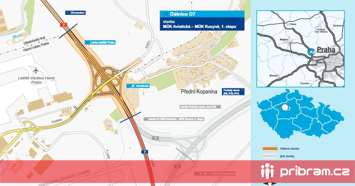 Ředitelství silnic a dálnic (ŘSD) vybralo zhotovitele přestavby klíčové mimoúrovňové křižovatky D7 Aviatická, která propojuje dálnici D7 s letištěm Václava Havla. Stavba má výrazně zlepšit dopravní napojení letiště na dálniční síť, zvýšit bezpečnost a zrychlit průjezdnost v oblasti, kde denně projede až 50 tisíc vozidel.