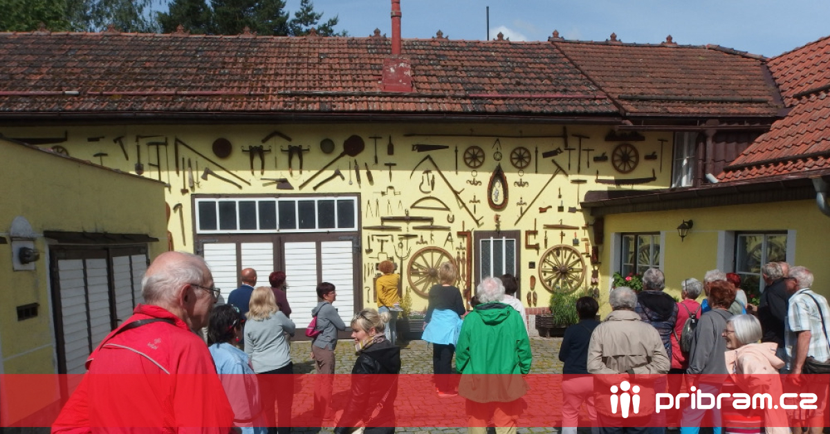 foto: Turisté z klubu seniorů, bývalých pracovníků České televize v Brně se v létě podívali i na výstavu selského nářadí v Cvokařské ulici ve Starém Rožmitále (pribram.cz / Karel Hutr)