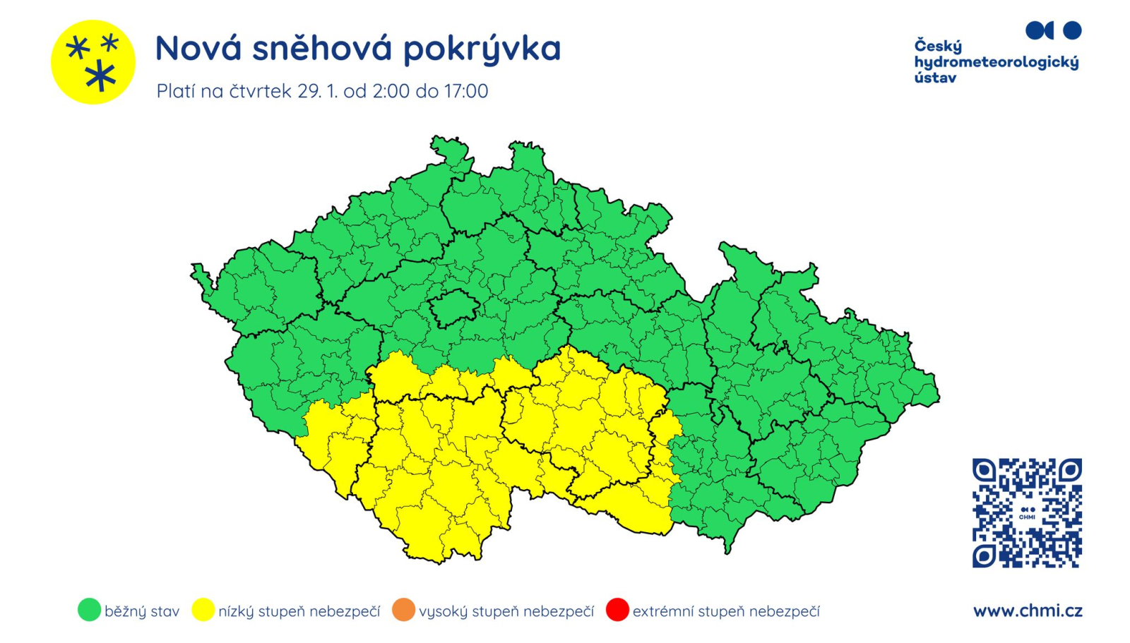 foto: Nová sněhová pokrývka 29. ledna od 2:00 do 17:00 hodin. / ČHMÚ