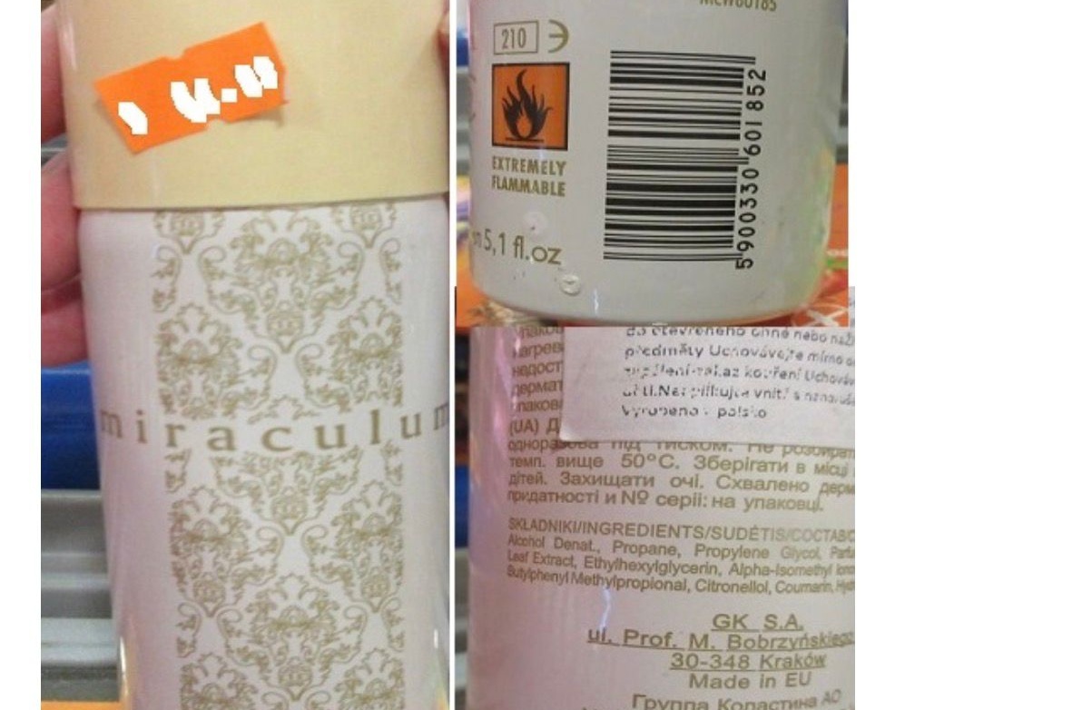 Ministerstvo zdravotnictví ČR varuje spotřebitele před kosmetickým přípravkem Miraculum, Deodorant, Natural Body Spray Vaporisateur. Podle vyjádření hlavní hygieničky ČR Barbory Mackové výrobek obsahuje látku, která může ohrozit zdraví.