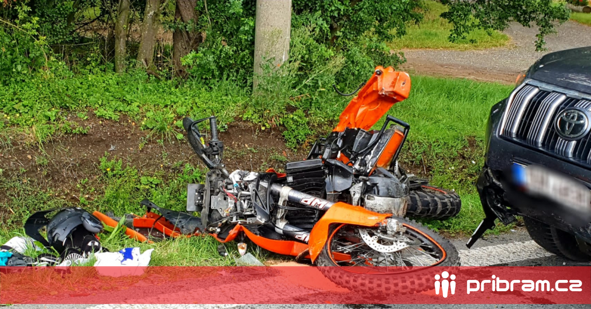 Na Příbramsku vletěl motorkář pod auto, na pomoc zraněnému spěchal vrtulník