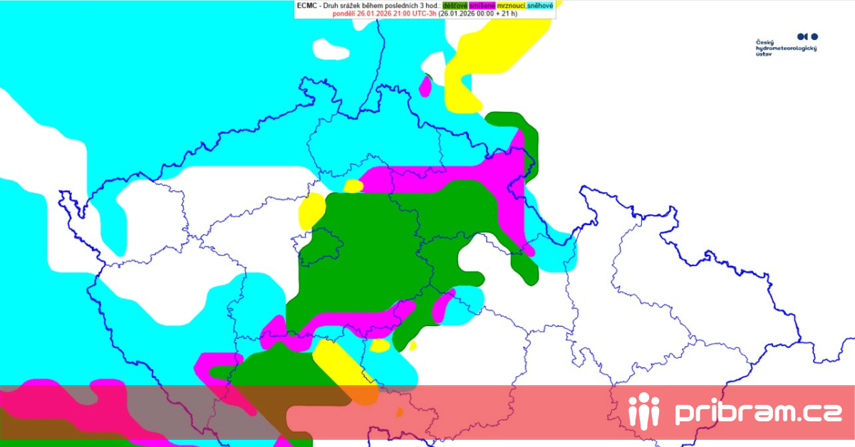 Nadále budou srážky v podobě deště, ale i sněhu nebo smíšené. V polohách nad 300 m n. m. postupně začalo sněžit. "Většinou přibude jen poprašek nového sněhu, v oblasti Brd mohou spadnout až 2 cm nového sněhu. Srážky postupně přecházejí všude ve sněžení, ale zejména v první polovině noci se nejen na území Středočeského kraje vystřídají všechna skupenství srážek (viz obrázek)," uvádí meteorologové.