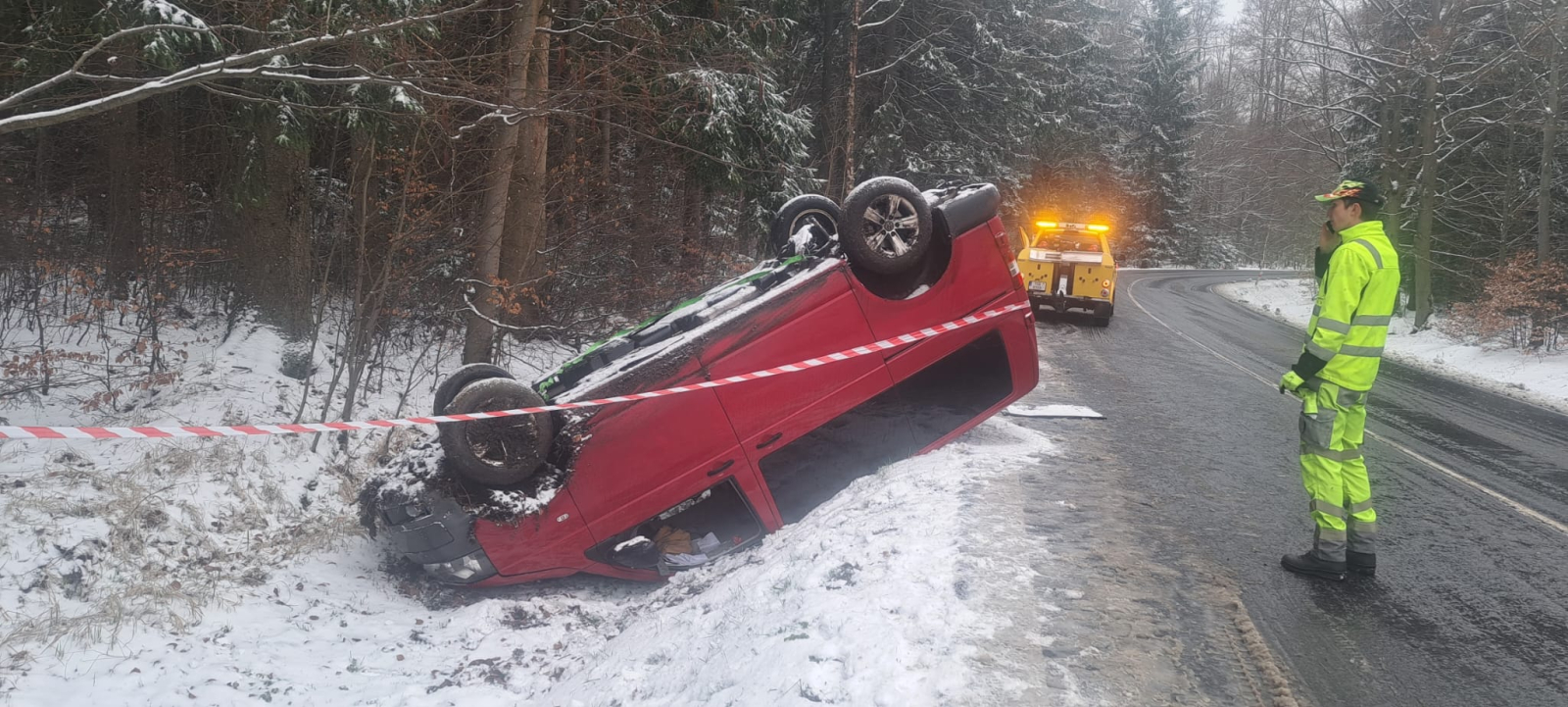 V pátek 10. dubna dopoledne vyjížděli záchranáři k nahlášené nehodě v katastru obce Věšín na silnici I/19 v lesním úseku.