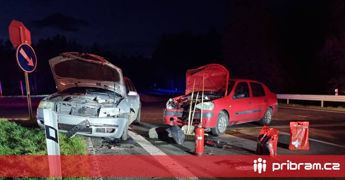 Na výjezdu z Příbrami se střetla dvě auta, dva zranění