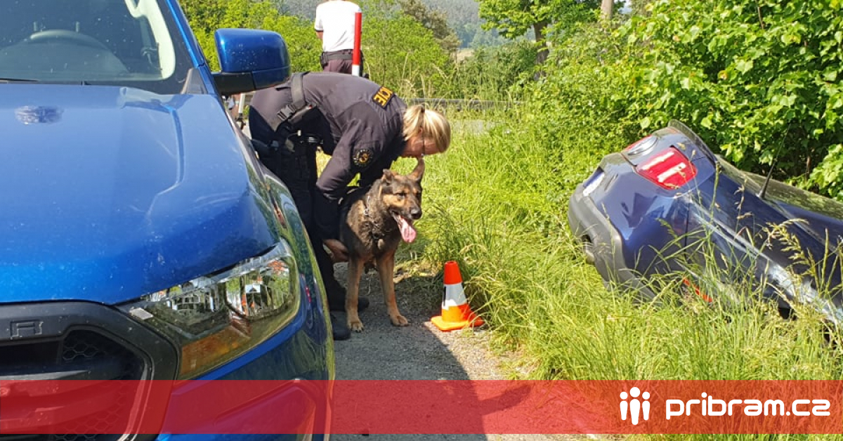 Policejní psovodi se služebními psy pátrají po řidiči osobního vozidla značky Mustang, který po havárii poničil svodidla a skončil se svým vozem mimo komunikaci. K události došlo na silnici I/18 u obce Líchovy na Příbramsku.