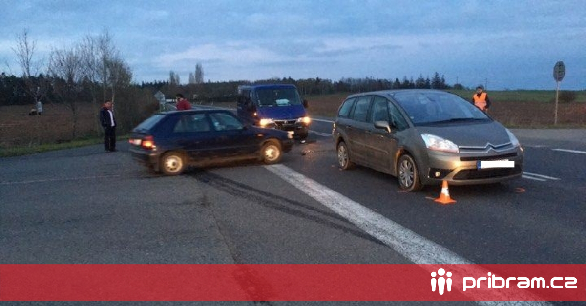 Nehoda dvou vozů uzavřela jízdní pruh na silnici 4 u Milína