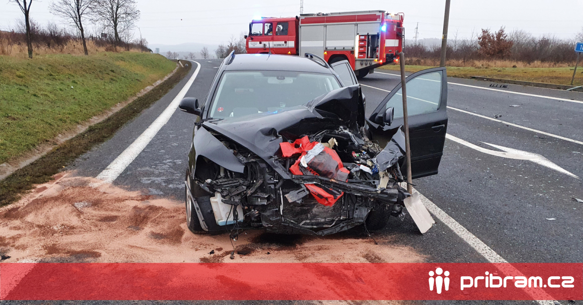 Srážka auta s motocyklem u Buše: Dva zranění skončili v pražské nemocnici