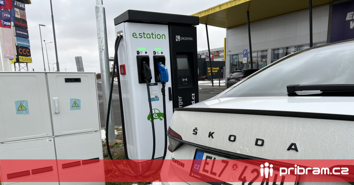 foto: pribram.cz/ Tomáš Pečenka / na fotografii je dobíjecí stanice pro elektromobily u STOP SHOPU v Příbrami