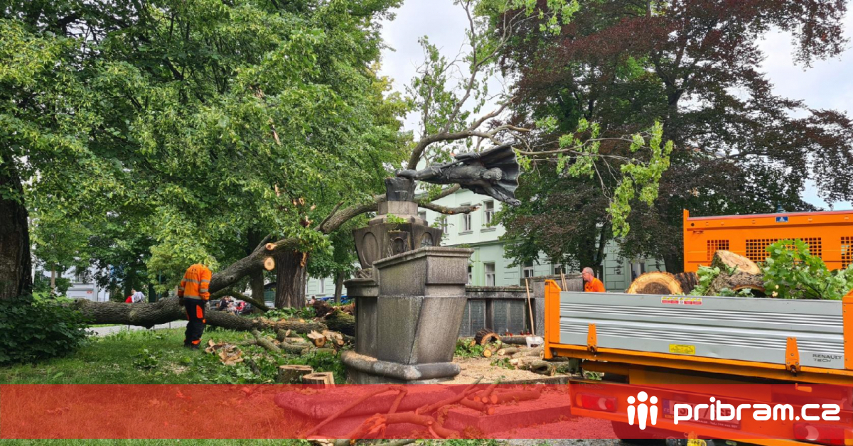 „Pádem stromu byla dnes poškozena socha jinocha s praporem a ratolestí z dílny Václava Šáry, která je od roku 1927 součástí Kotěrova pomníku padlých v 1. světové válce. Nyní zajišťujeme odborné posouzení, vyhodnocení rozsahu poškození sochy a samozřejmě určení ideálního postupu při její opravě,“ uvedla místostarostka Zorka Brožíková.