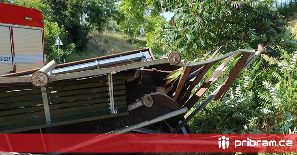 Po nehodě u Lhotky byla zdemolovaná autobusová zastávka, jeden z řidičů skončil v nemocnici