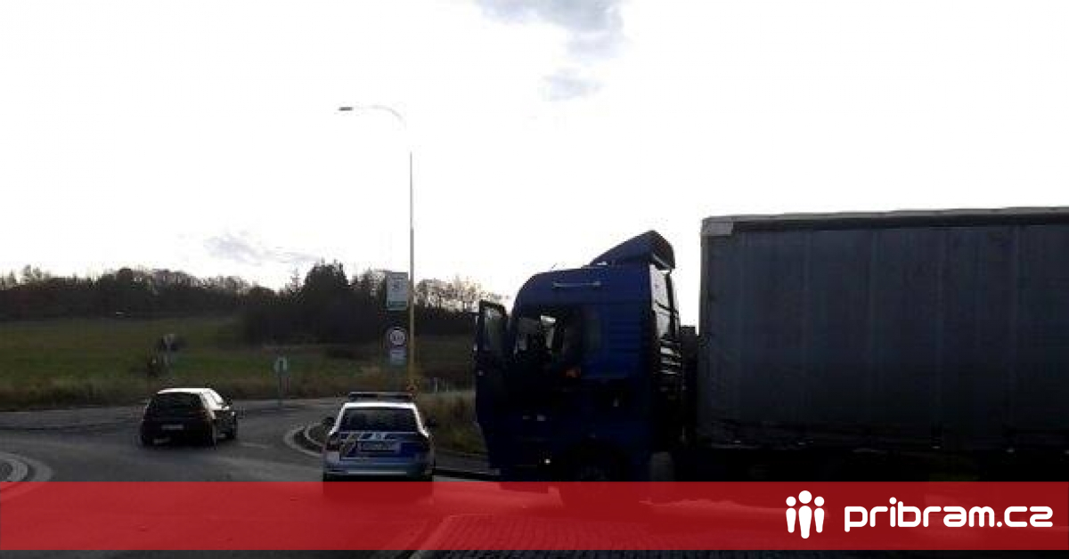S komplikacemi počítejte při průjezdu Evropskou ulicí v Příbrami. Na kruhovém objezdu u masokombinátu stojí porouchaný kamion. Na místě je policie, která řídí dopravu přes kruhový objezd kyvadlově.
