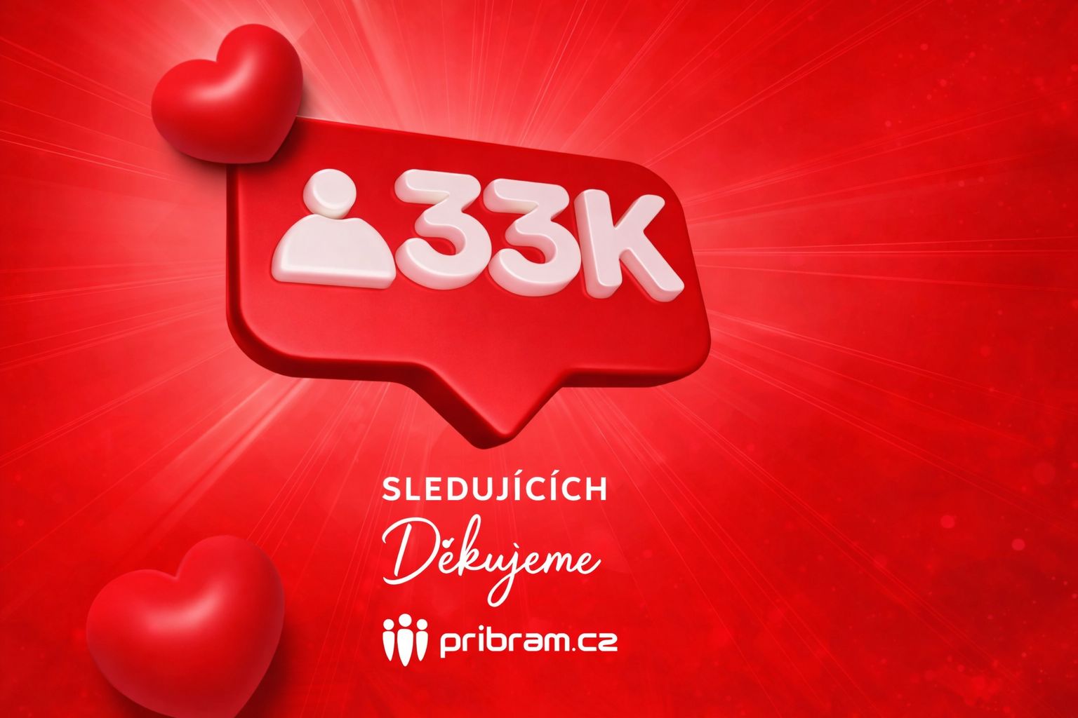 Dosáhli jsme na metu, kterou jsme v historii pribram.cz ještě nikdy nepřekročili: více než 33 000 sledujících na Facebooku. Je to pro nás obrovský moment — a hlavně závazek vůči vám, kteří chcete vědět, co se v Příbrami děje.