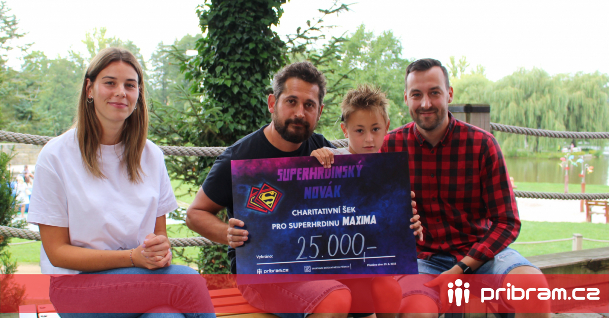 Prodej samolepek probíhal od 1. července, kdy hlasující zvolili v anketě o místního superhrdinu šestiletého Maxima, který bojuje s dětskou mozkovou obrnou. Sbírka končila 28. srpna, za bezmála dva měsíce se vybralo celkem 25 tisíc korun. Šek byl předán 29. srpna ředitelem Sportovního zařízení města Příbram Janem Slabou a Markétou Fiřtovou, redaktorkou portálu pribram.cz, bez jehož pomoci by se sbírka nemohla uskutečnit. „Za spolupráci a pomoc se sbírkou panu Tomáši Pečenkovi a jeho týmu moc děkuji. Jsem rád, že jsme se mohli spojit pro dobrou věc,“ děkuje Slaba.