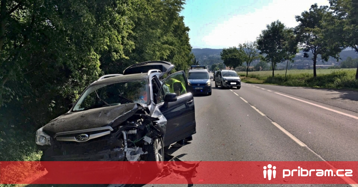 Provoz na hlavní silnici směrem na Příbram komplikuje nehoda dvou vozidel