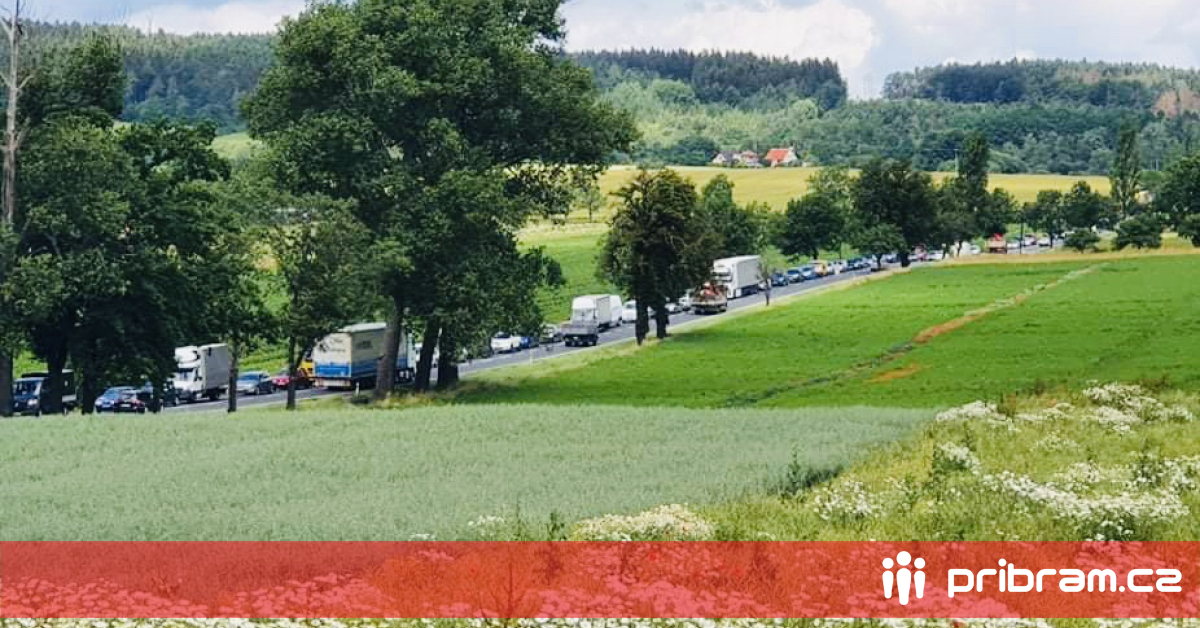 Střet tří vozidel značně narušil provoz na silnici I/4 u obce Těchařovice na Příbramsku.