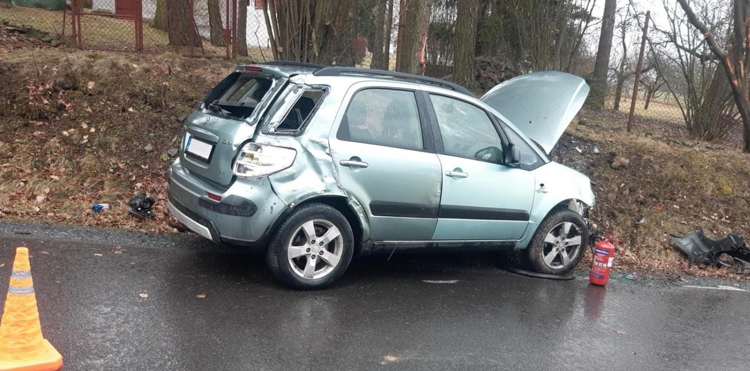 Nedaleko Nové Vsi pod Pleší v oblasti Bažantnice se v neděli stala nehoda. Řidič Suzuki se podle policie měl vyhýbat protijedoucímu autu. Na místo byla přivolána záchranka.