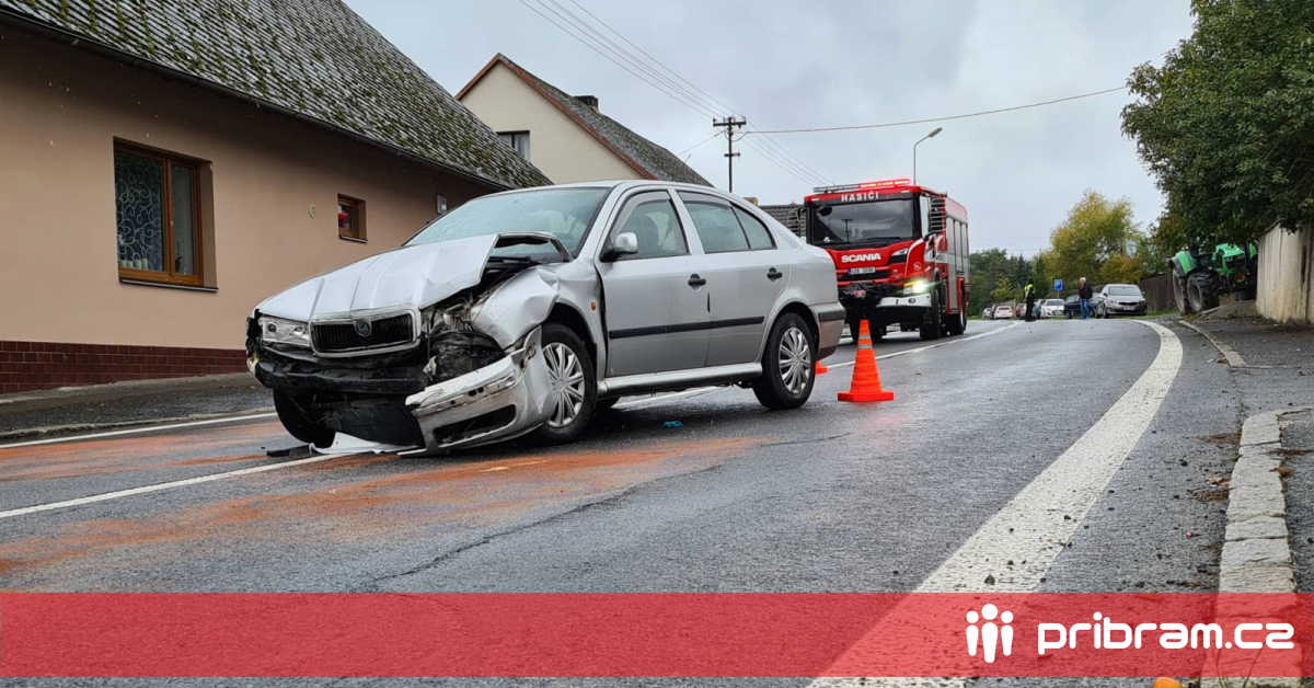Nehoda v Březnické ulici v Příbrami: Audi narazilo do octavie, u události zasahovali hasiči, na místě zranění