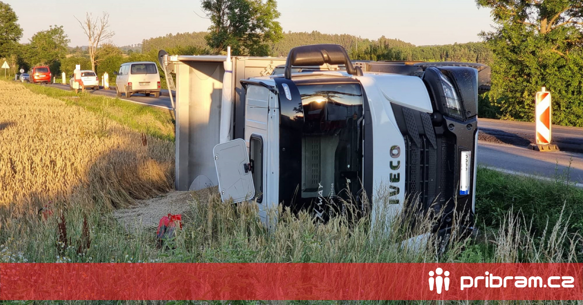 Mezi obcemi Líchovy a Dublovice na Příbramsku dnes vpodvečer havarovalo nákladní vozidlo převážející štěrk. K havárii došlo v opravovaném úseku komunikace, kde je provoz veden kyvadlově jedním jízdním pruhem. Na místo vyjely záchranné složky, spolujezdce převezla záchranná služba do nemocnice. Okolnosti nehody dokumentuje policejní dron, doprava nebyla přerušena.