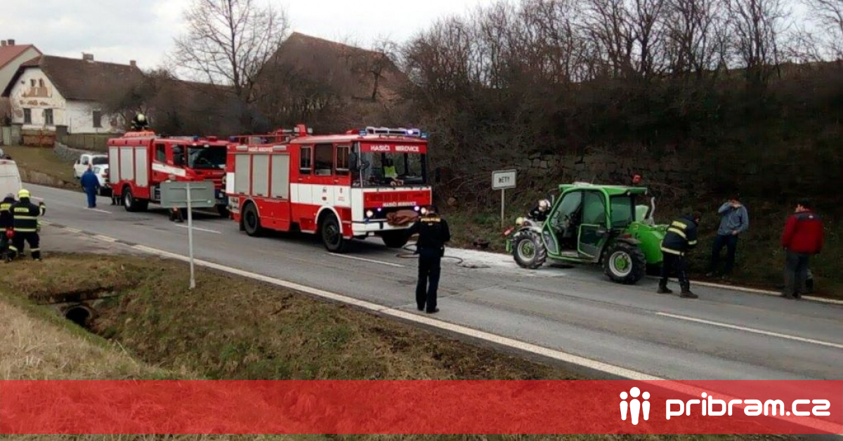 U Letů se vznítil zemědělský nakladač, blokuje silnici