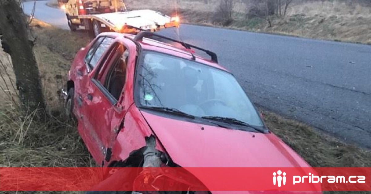 V podvečer na mokré silnici mezi Příbrami a Narysovem nezvládla řidička osobního vozu řízení a sjela do příkopu. Nehoda se obešla bez zranění, ale vozidlo nejde z příkopu vyprostit.