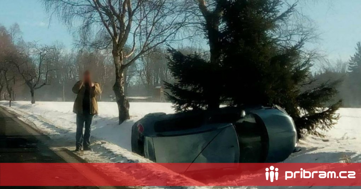 U Teslín skončilo auto na střeše
