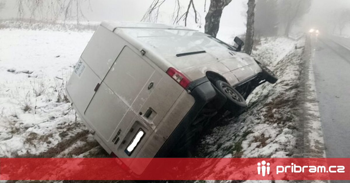 Na silnici č.19 od Plzně před obcí Teslíny došlo k nehodě, při které dodávka zůstala v příkopu