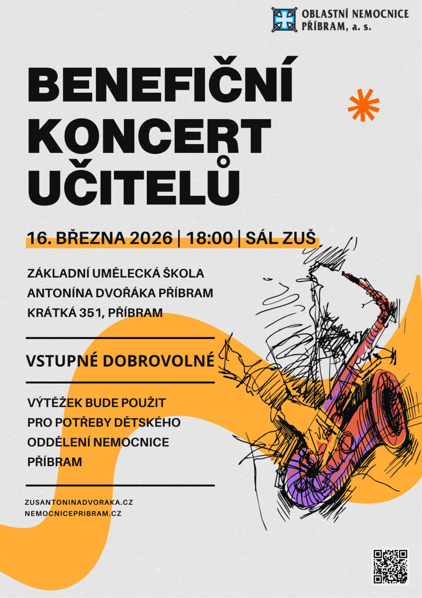 Učitelé příbramské ZUŠ Antonína Dvořáka se 16. března sejdou, aby pro dětské pacienty nemocnice uspořádali benefiční koncert. Akce se stává tradicí – pedagogové se mezi sebou domluví, osloví další nadšence a společně připraví vystoupení, jehož cílem není finanční odměna, ale radost a úsměv dětí.