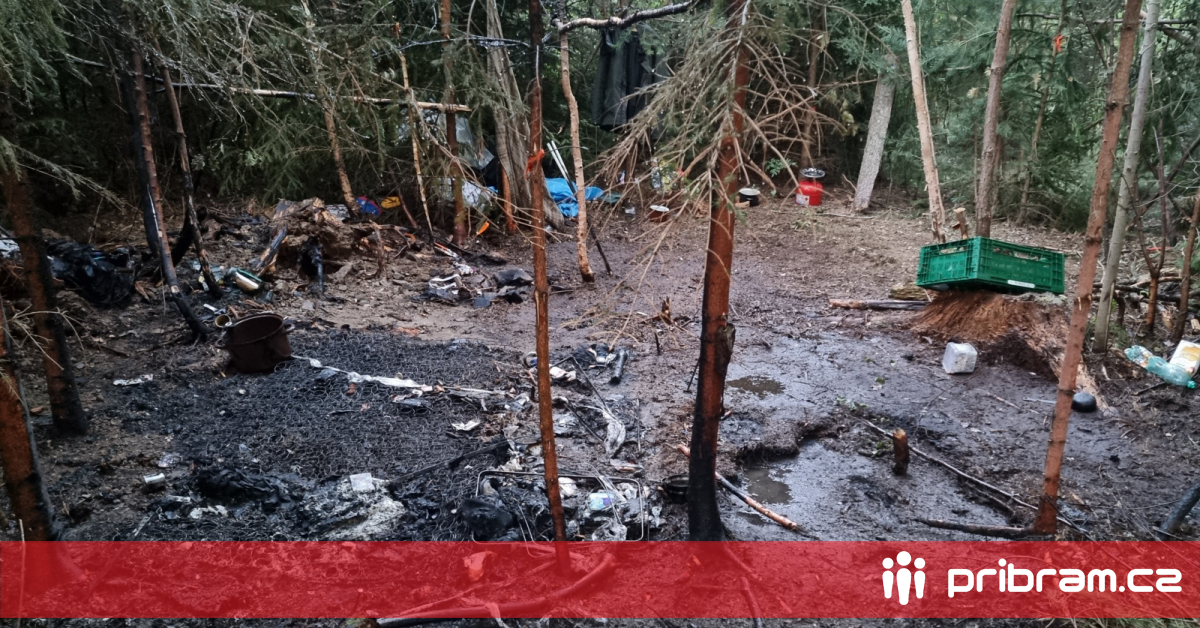 V lese u Příbrami shořel přístřešek pro bezdomovce. Včasným zásahem hasičů nedošlo k větším škodám