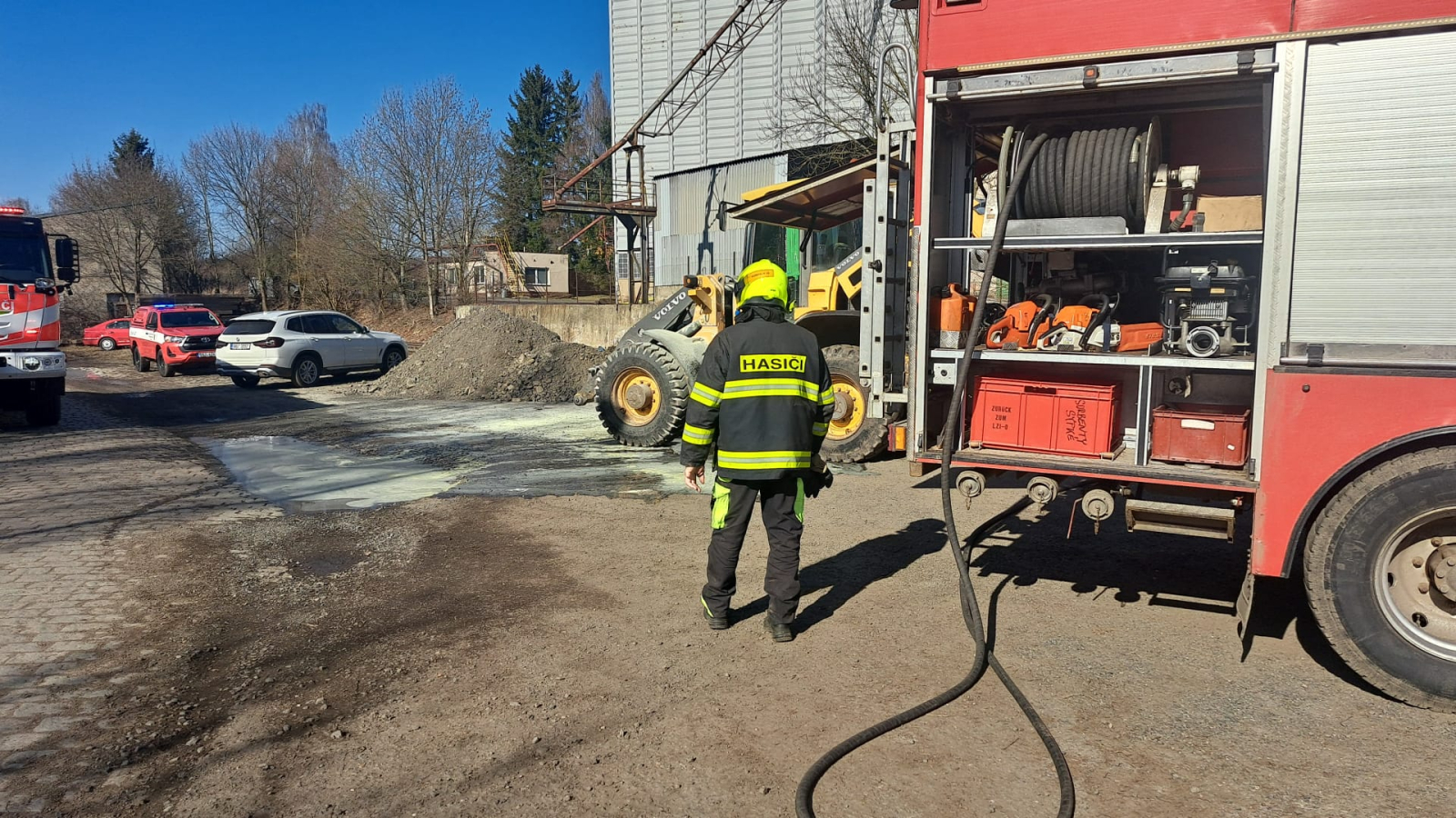 "Jednalo se o požár kolového nakladače v hydraulické části. Oheň byl uhašen ještě před příjezdem jednotky k události," uvedla mluvčí hasičů Tereza Sýkora Fliegerová.