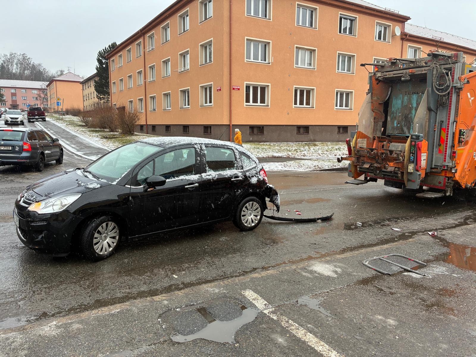 Podle policie řidič osobního vozu vyjížděl z parkoviště a přehlédl za sebou projíždějící popelářský vůz a narazil do něj.