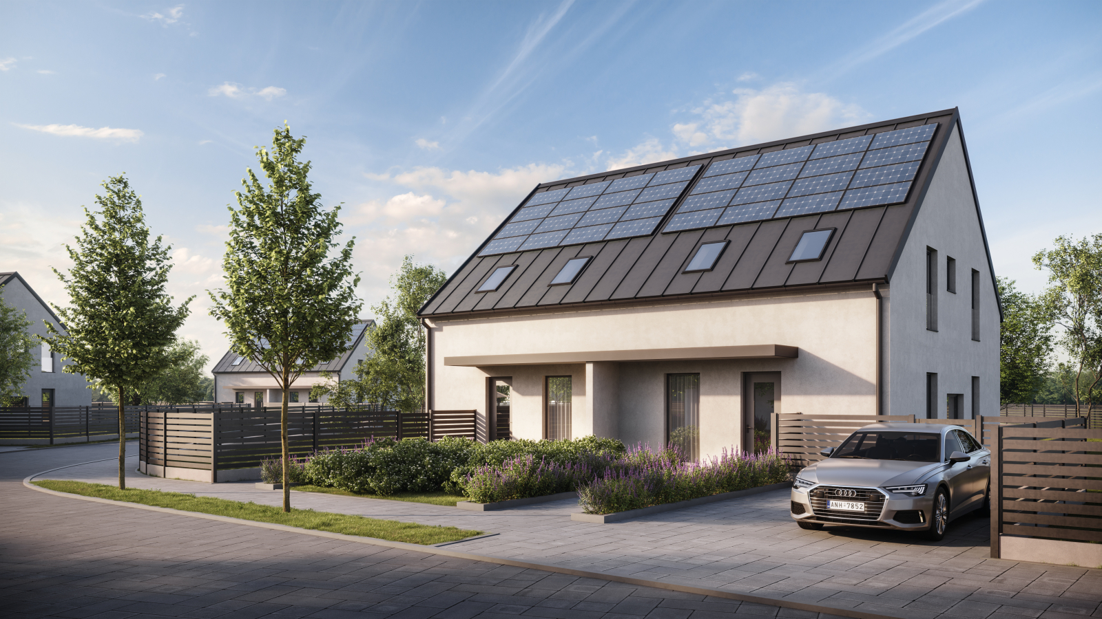 Zelená Narysov nabízí moderní, kvalitní a zároveň udržitelné bydlení, které odpovídá nárokům dnešních rodin. Domy jsou stavěny ve vyšším standardu, s důrazem na funkčnost, design a minimální provozní náklady. Každá jednotka dosahuje energetické třídy A a je vybavena tepelným čerpadlem a přípravou pro nabíjení elektromobilů. Součástí dodávky projektu bude také fotovoltaická elektrárna (FVE) v ceně, což výrazně posílí energetickou soběstačnost a dlouhodobou úsporu domácností.